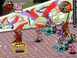 The Dark Barrier Psych creates a violet (Creepy Weepy Barrier), or a black (Black Saturn) barrier around Neku, after keeping the stylus trained on him for a while. When the Psych is in effect, Neku is invincible, causes damages to enemies that collide with him and recovers HP when he does so, and can move freely with the barrier up. Compared to Aqua Barrier, Black Saturn requires much less time to reboot than Splish Splash Barrier, but only recovers HP when colliding with enemies. Creepy Weepy Barrier does not reboot at all. Dark Barrier passes the puck with each hit (collision with an enemy, recovering HP). Black Saturn can also inflict Defense Break.