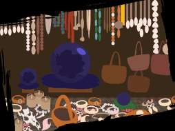 - (Entering the shop) "H-hello? (He's back AGAIN!)"