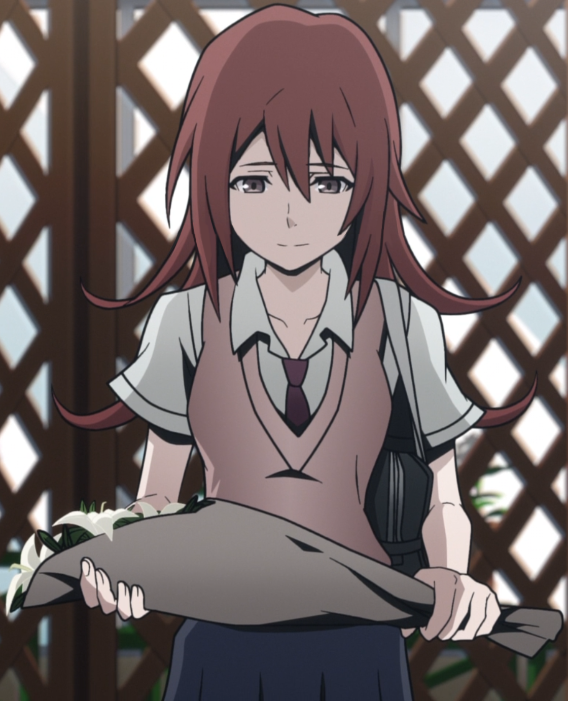 In the episode "Reapers", she is seen buying flowers for Shiki's grave because Shiki liked flowers. She mentions she leaves offerings for Shiki daily. Eri realizes that at first, she thought she did not want Shiki to be lonely, but now knows it's herself who does not want to feel lonely.