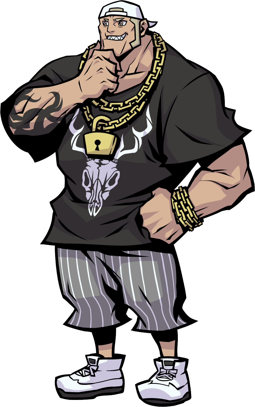 While his impressive physique gives off an intimidating air, Susukichi is actually a bit of a friendly chatterbox, rambling in his surprisingly high voice. He can be extremely competitive and boastful towards Players weaker than him, like how he first treated Rindo and Fret. His words often confuse others as his ramblings usually doesn’t make sense, but he is willing to go out of his way to help new Players, such as Rindo and Fret by teaching them how to Scan for Noise, meaning while he is competitive, he has a sense of fairness, even if he comes across as condescending of others’ lack of knowledge. He is very aggressive in nature, and is notably short-tempered when he is provoked. Despite him being fair at times, he is perfectly capable of deceiving others, such as how he told the Wicked Twisters that he would give them points if they completed a task for him only to reveal later that he was lying.