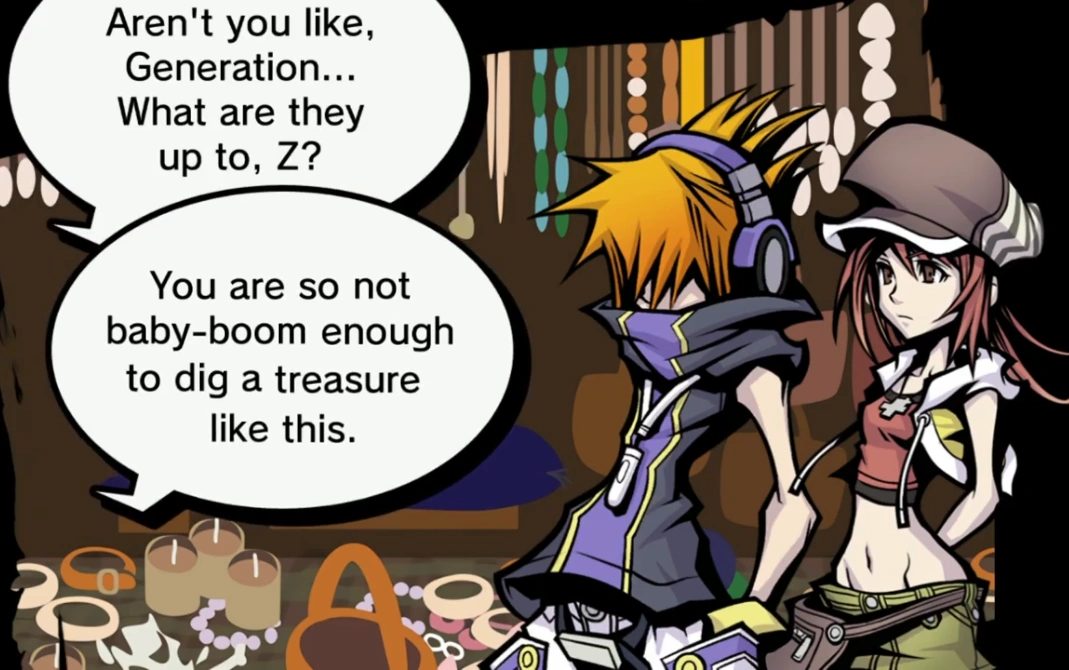 One more subtle theme is implied to be trauma, as it is heavily implied the protagonist Neku became the way he was due to the loss of a friend, but the game never explicitly confirms this, much like real life and how people don't always know other people's histories and why people act the way they do.